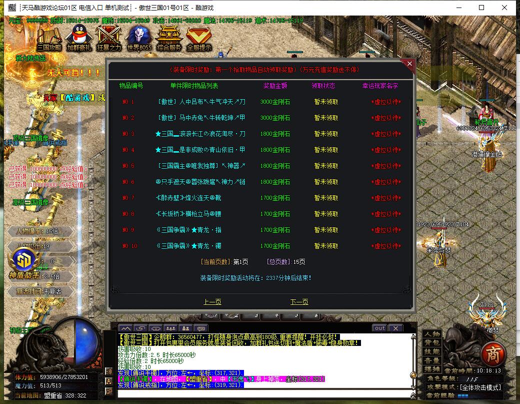 天下午统一合区,晚上20:00统一拿沙,保底发放红包888-1888.