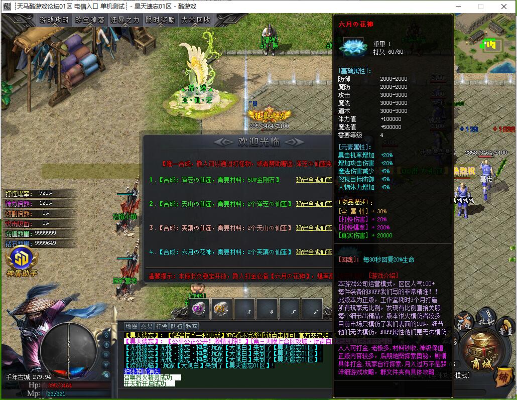 仙莲  战鼓 时装  称号 等这些都有地图 终极BOSS比较多 刷新块