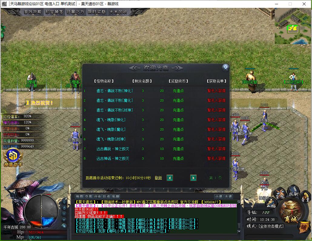 本F 总共N个大陆 越往后 终极BOSS 越多 爆率越高 欢迎来挑战
