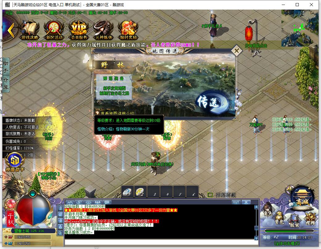 3、优化了前期的升级方式,200级前靠打怪物升级(基本一刀一级),200-300级在村庄里面升级;秒升300级;