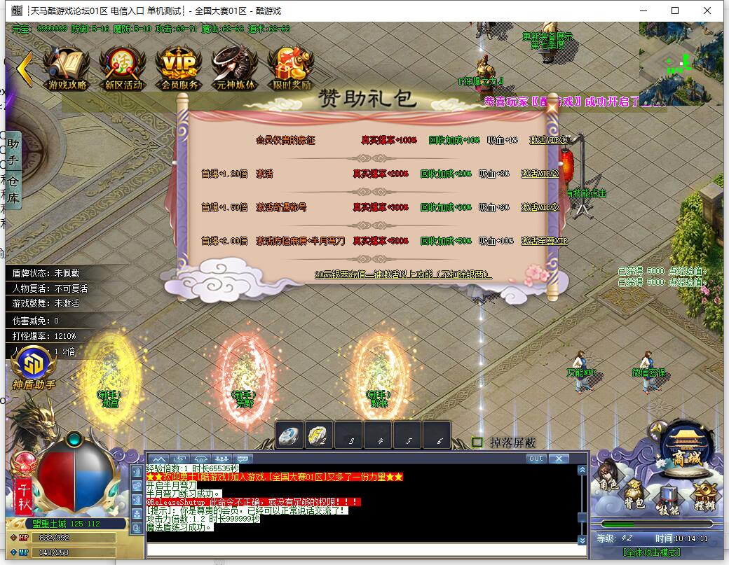 9、村庄内增加一个【沙捐+狂暴】地图,刷新怪物与每日首冲地图一致,还有必爆怪刷新。方便玩家起步。
