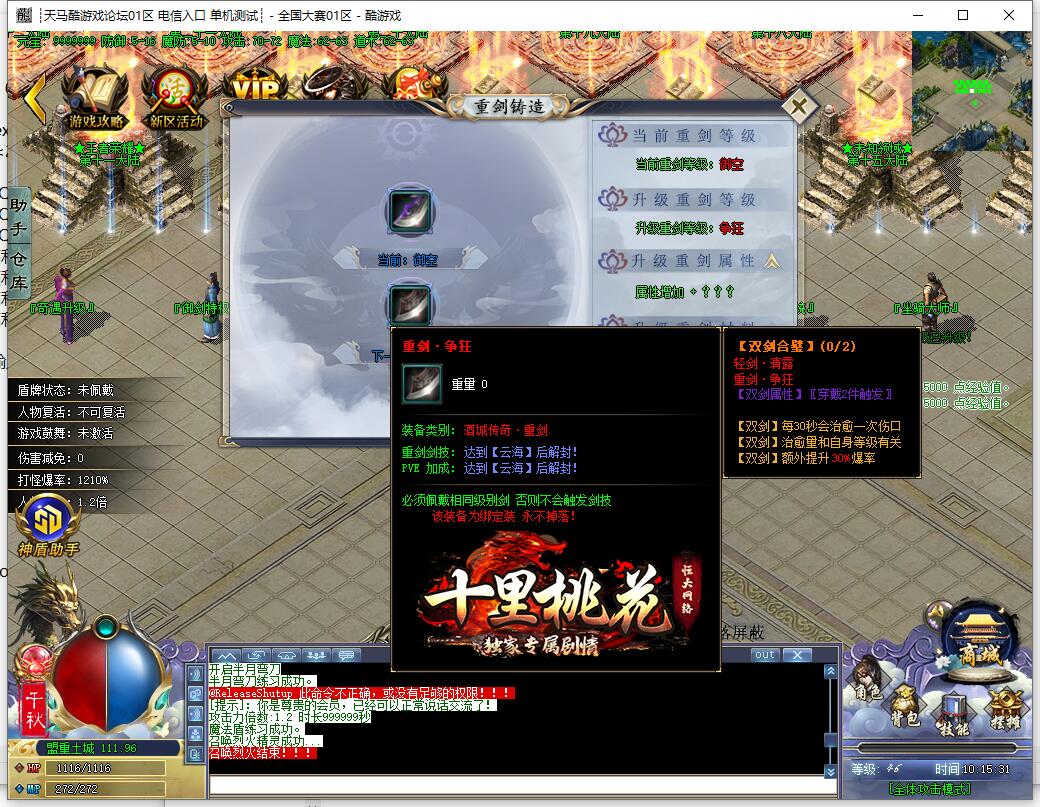 4、新增自助转区NPC,具体功能土城查看,转区规则为老区充值100元以上的银两就可以转新区,新区充值100元就可以领取200,简单说冲多少送多少;