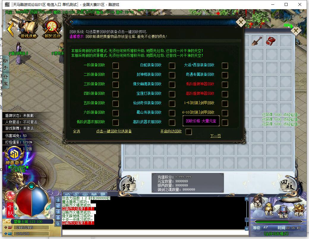 2、提高了充值玩家的爆率加成。充值100元银两,加500%爆率(5倍)。充值500元银两,加2500%爆率加成(25倍),以此类推。上不封顶。。(全部为真实爆率。激情服爆率必须高点)