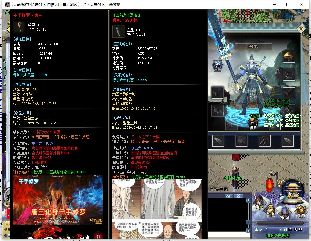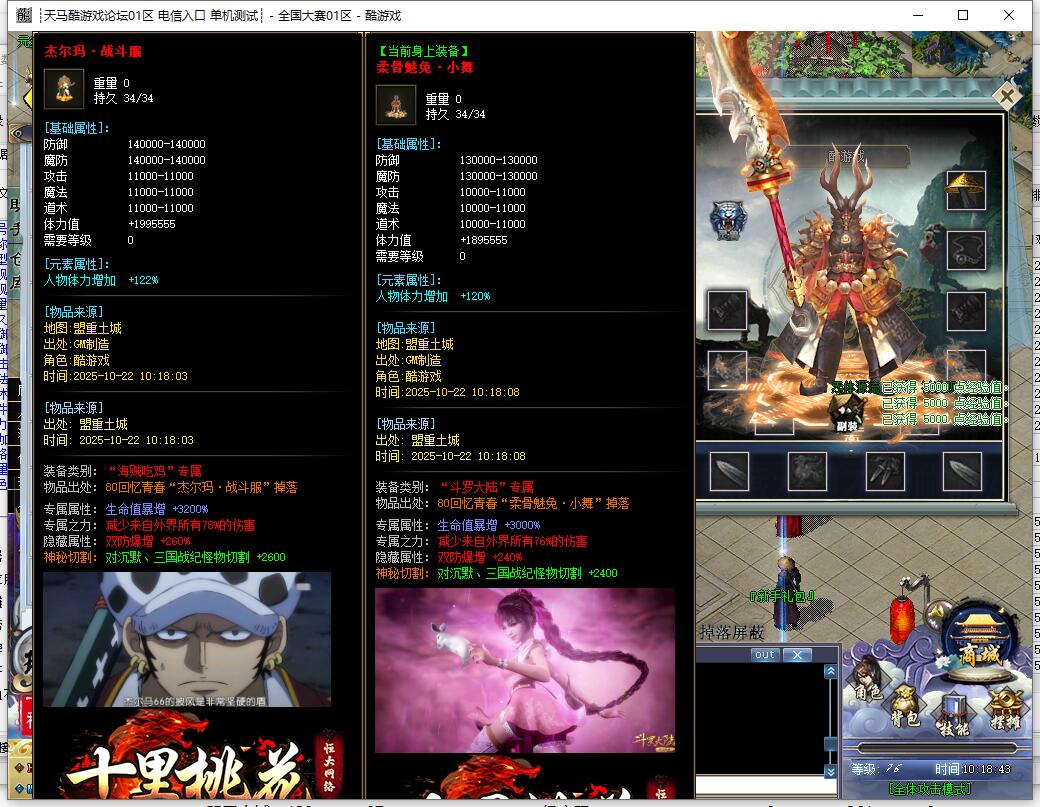 3、新增了三国战纪篇、圣斗士篇。具体在14大陆进入查看。(N多装备、N多怪物,N多专属)。