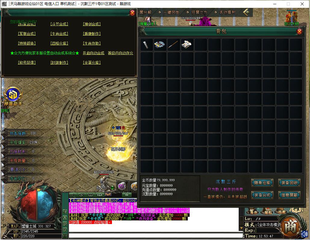 ★.上线玩道士开个狂暴召唤4个宝宝直接开干就行!打到金币可卖土豪