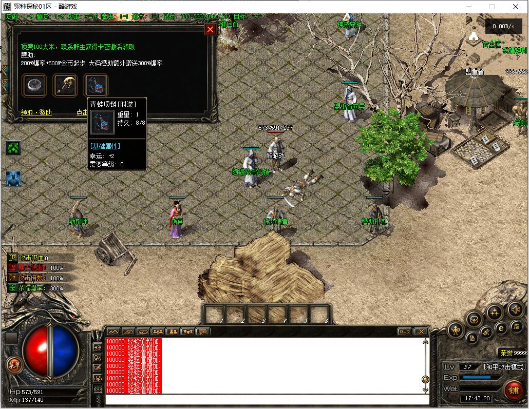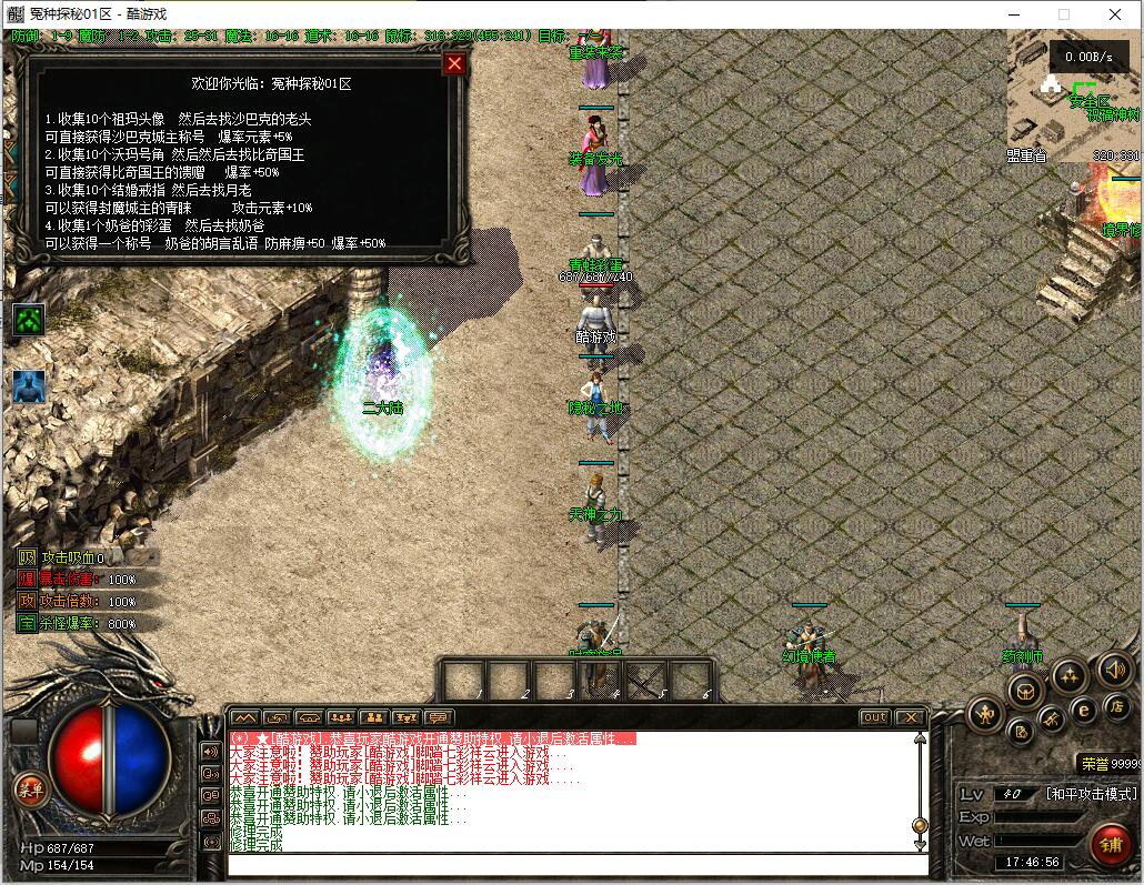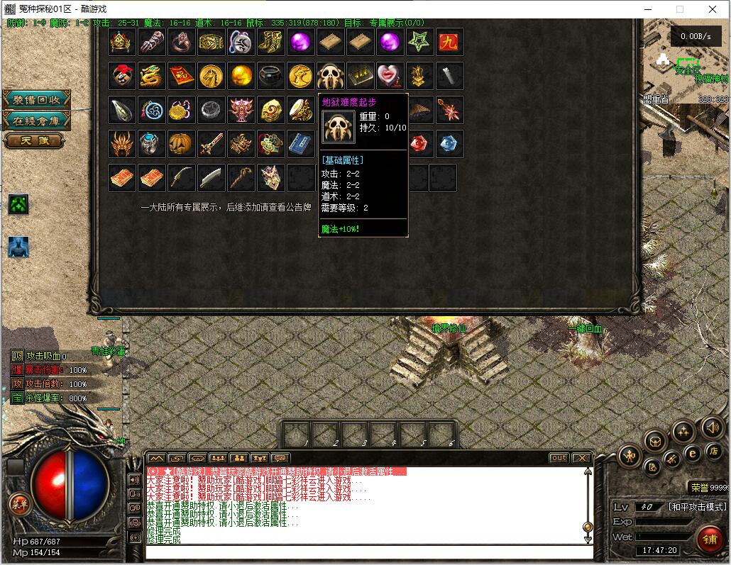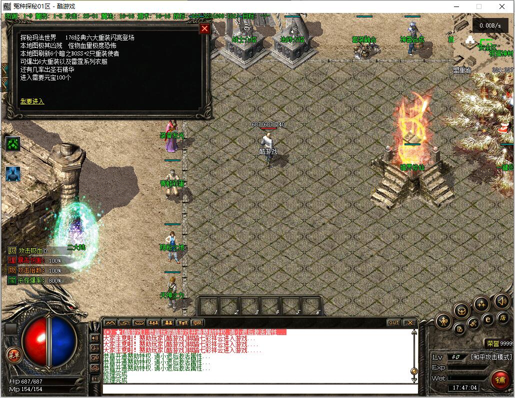 战士:天赋战神 需要魔法神石一块——后面会讲述哪里爆 【此技能增加经验和爆率】?