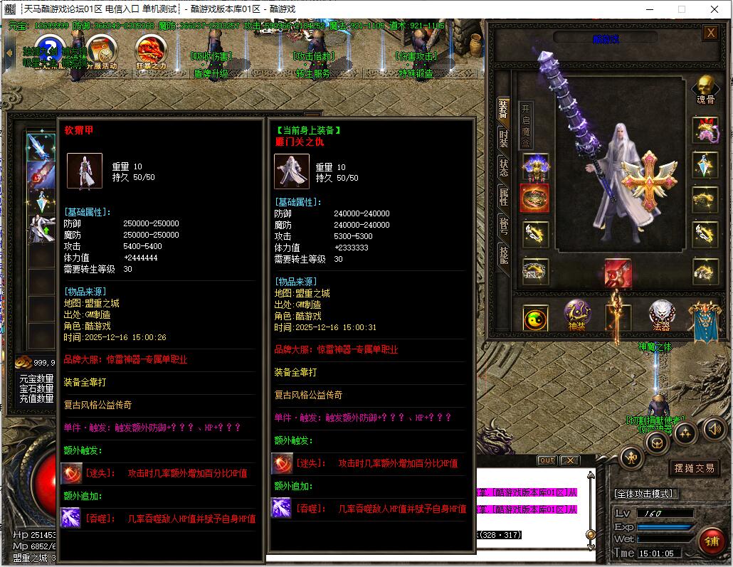 7:本服套装属性很强大!必须要弄套装,套装属性翻倍及吸血属性!越级打怪的必须条件之一