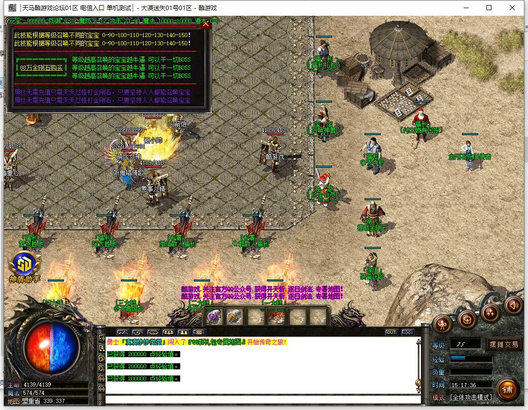 散人优势》所有人免费召唤宝宝,召唤圣兽等级越高威力越大,横扫一切BOSS