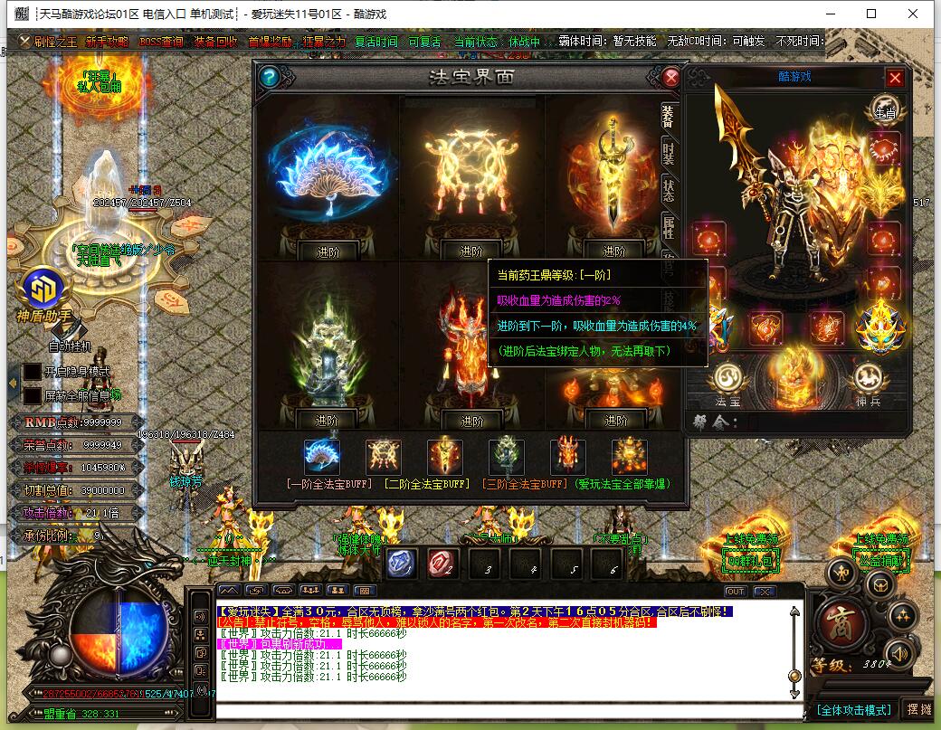土豪玩家可多花30块,去锁妖塔爬塔,总共六层!!!爬完六层挨个大陆做一下转生跟称号基本毕业~~
