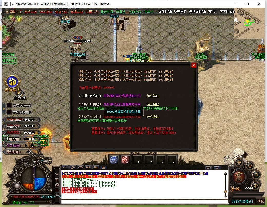 充值比例: 1块钱等于10消费点 满号只需30元,无任何隐藏套路,合区前后消费都一样!