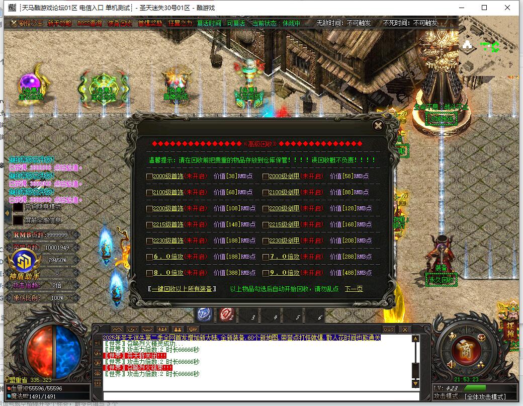 [圣天迷失)充值比例1:1圣天金元全服通用货币