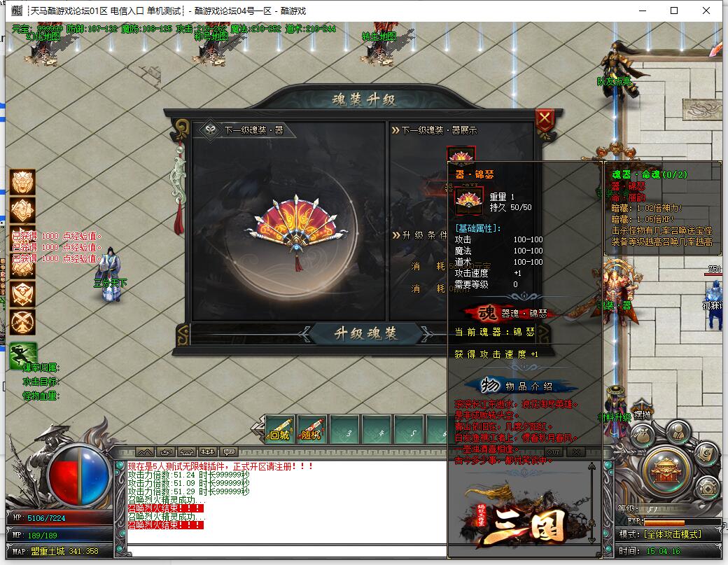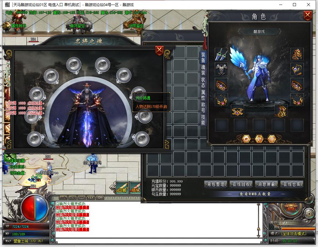 8.魂装,魂装分2个部位.分为:器魂.命魂.进入游戏会赠送初级魂装.魂装提升要求为元宝,银两