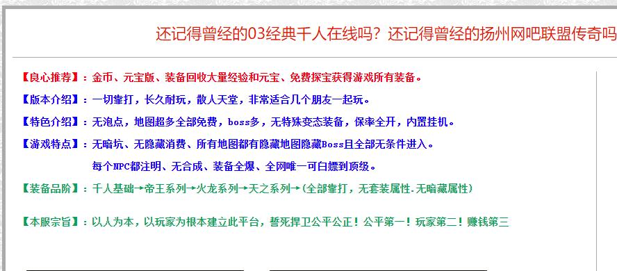 [扬州复古]1.76单职业传奇