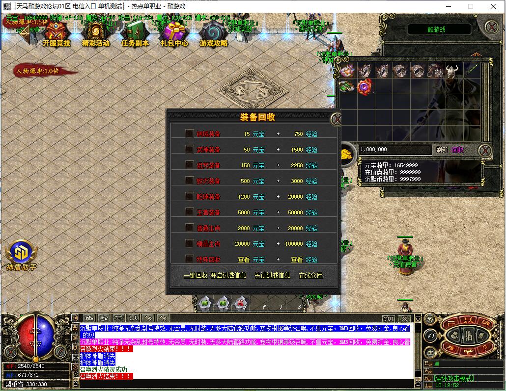 【限时奖励】:本服为回馈玩家,击杀BOSS奖励限时回收奖励,永久回收奖励,轻轻松松赚取高额回报!