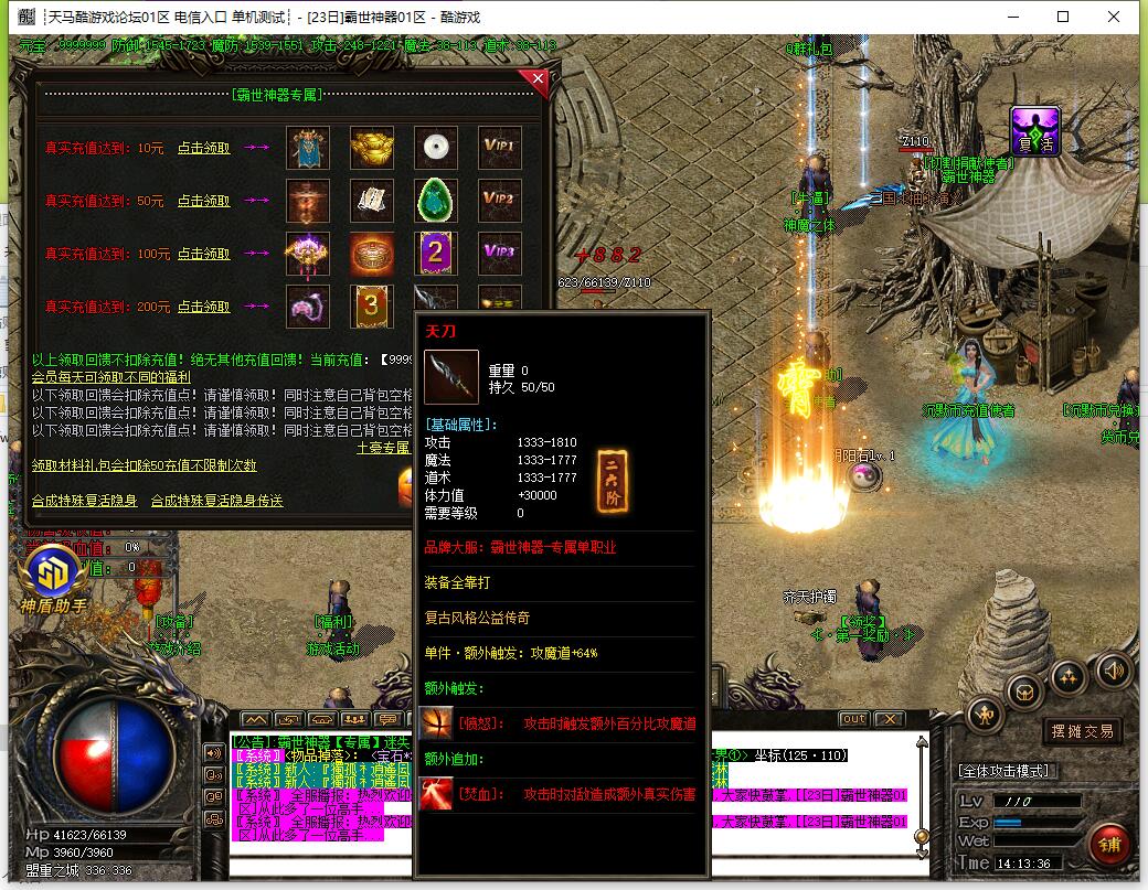 12:专属装备:每个大陆都有镇妖塔出现,击杀BOSS将获得神力倍数的装备和每秒百分比回血。击杀之后将自动佩戴人物身上!