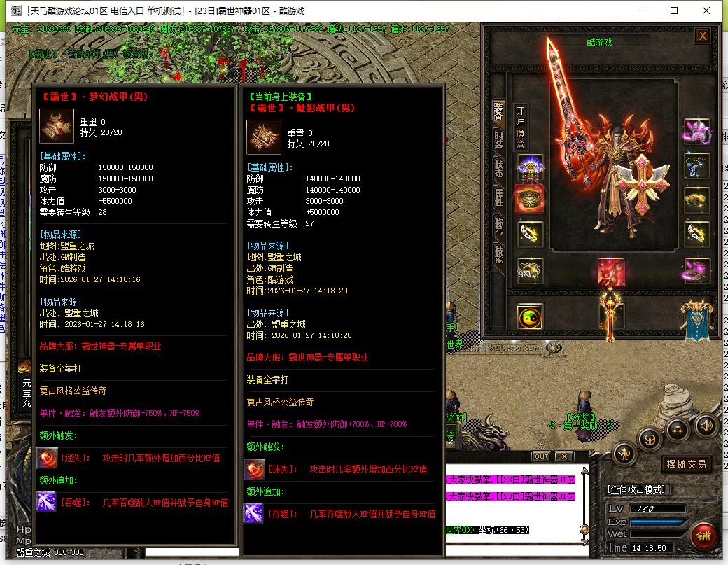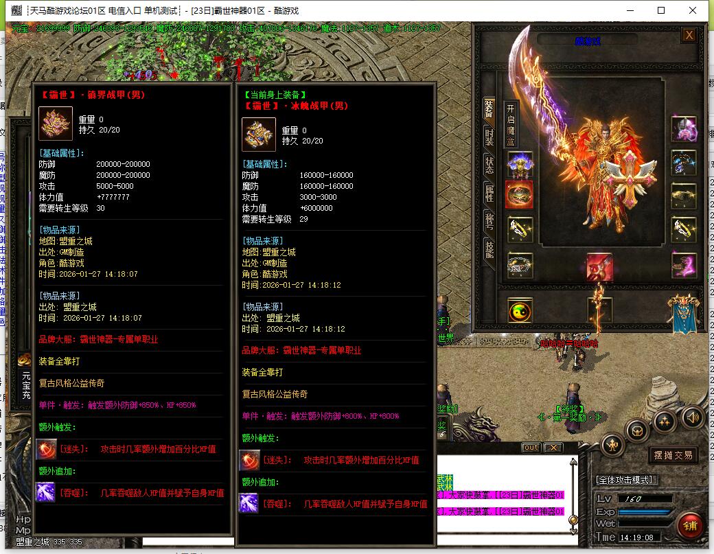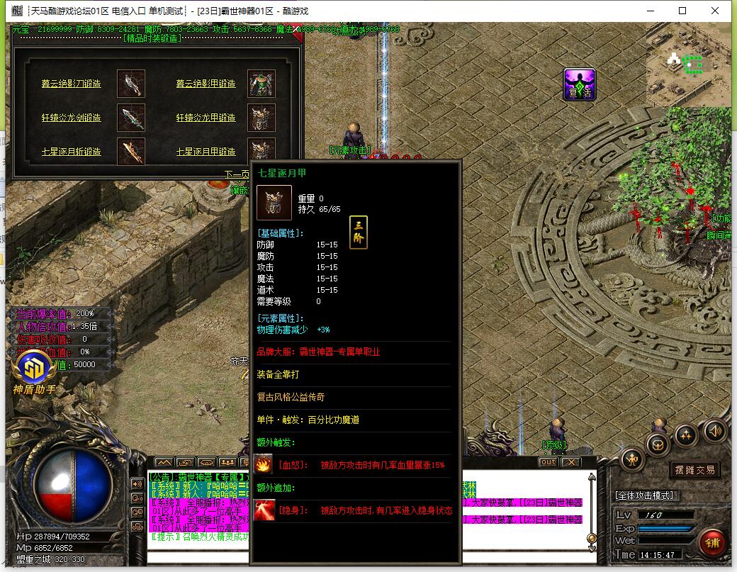 7:本服套装属性很强大!必须要弄套装,套装属性翻倍及吸血属性!越级打怪的必须条件之一