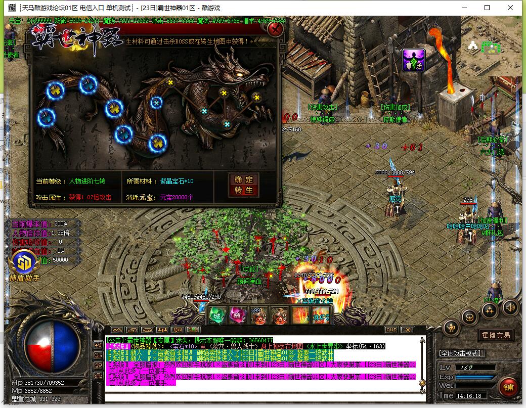 4:御兽门:可召唤御兽进行辅助战斗,御兽具有真实伤害,无视防御,根据阶段不同冰冻几率也不同,可以PK哦