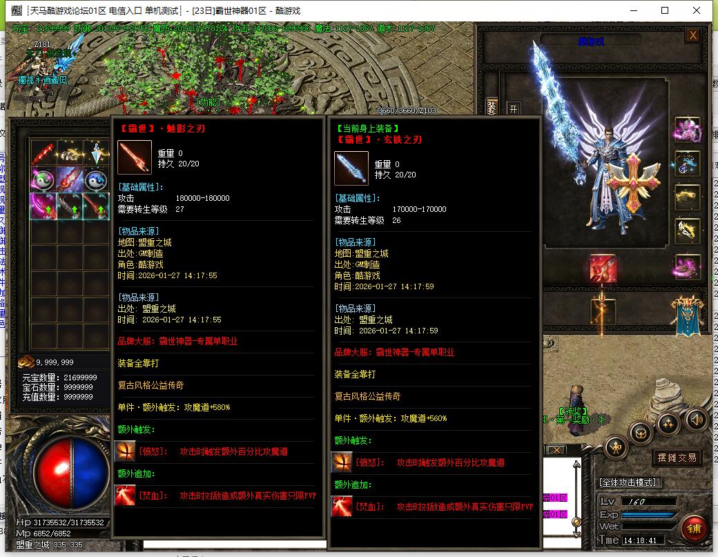 3:爆率详解:本服1v99以上怪物即可爆出全服所有装备,绝无保留!