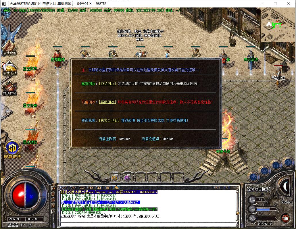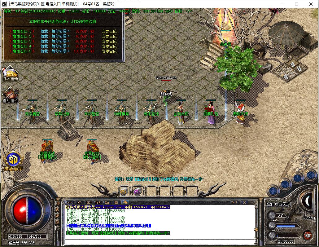 回血系统:本服无药品恢复,需要靠血石恢复,血石等级很重要,很重要,很重要!~~~~^