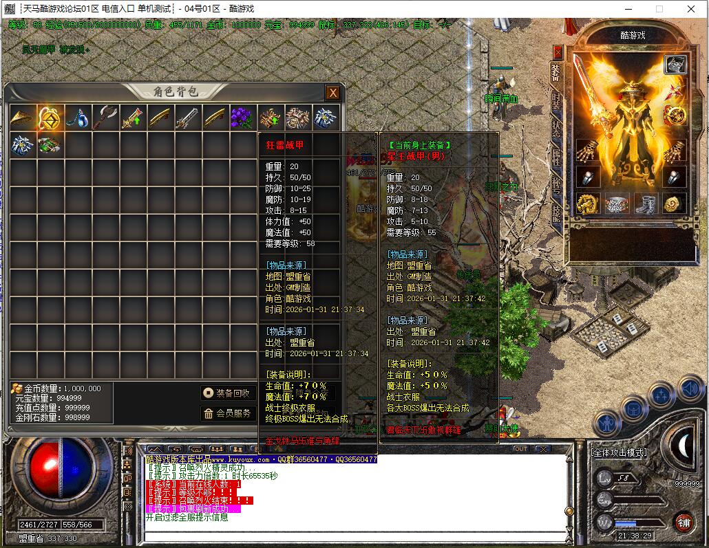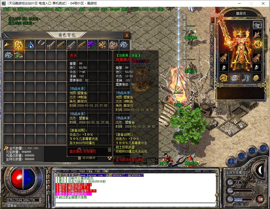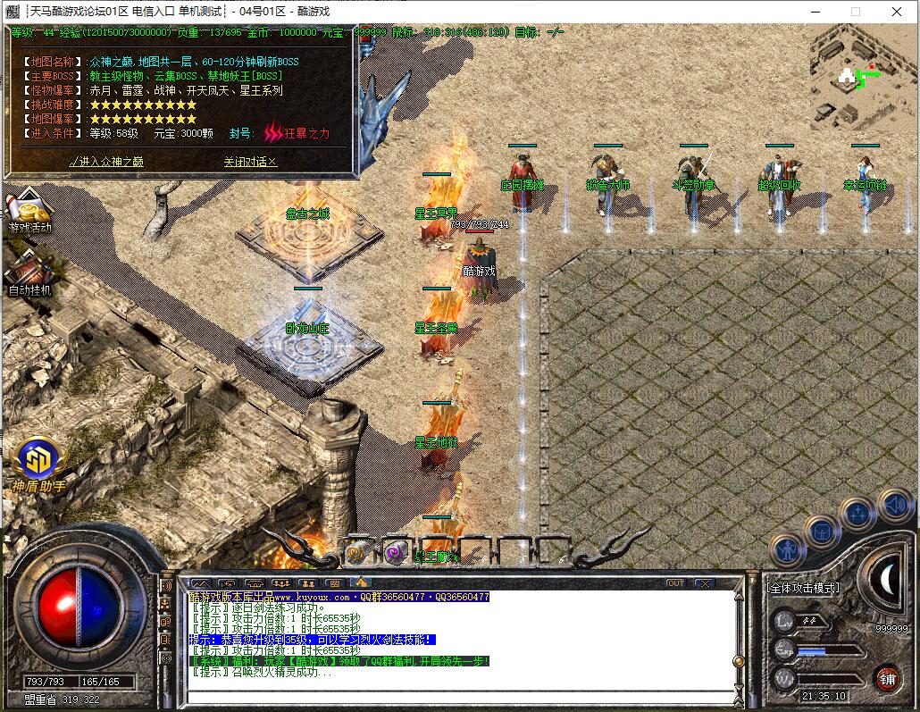 本服所有BOOS刷新时间60分钟。地图BOOS满屏,装备非常好打!
