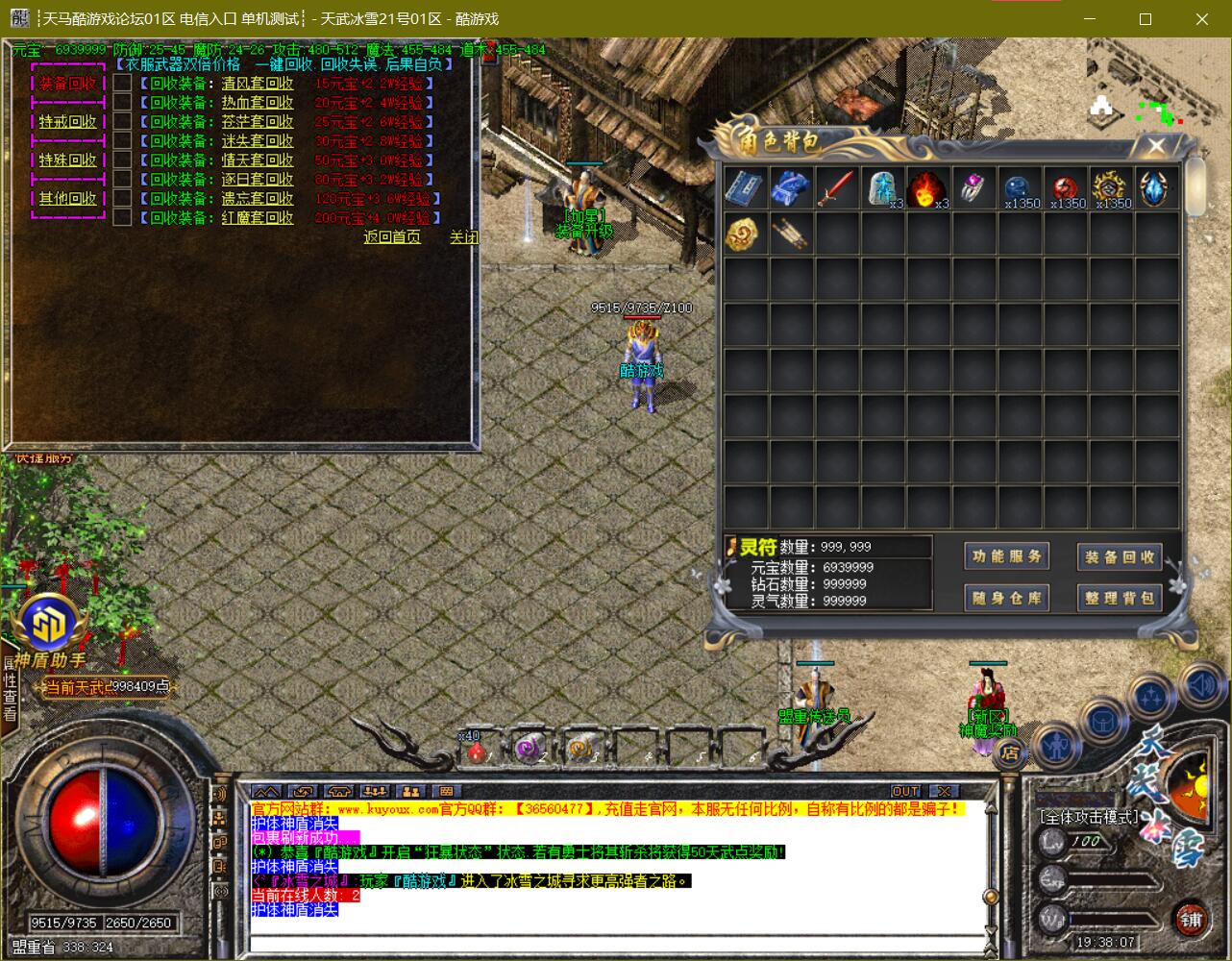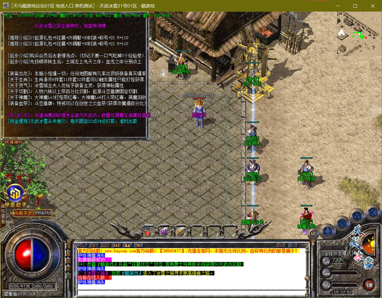 【天武点】充值消费回收提米全部为天武点,教里在屏幕左面属性查看