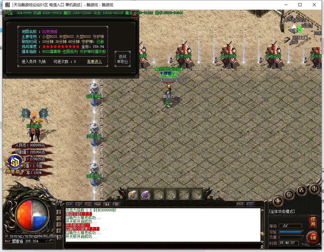 [游戏简介] :1装备全靠打.爆率完全看脸.只要有时间元宝 装备等级全都有!