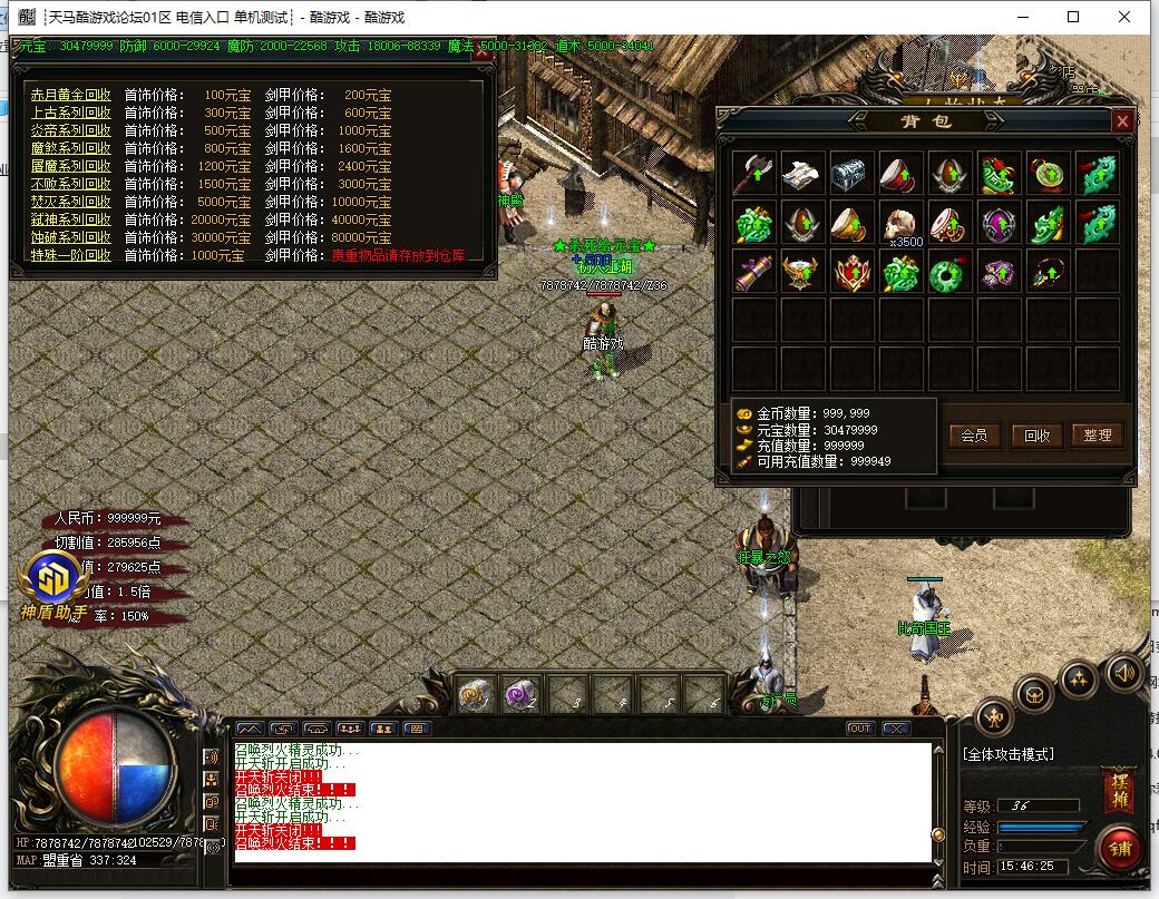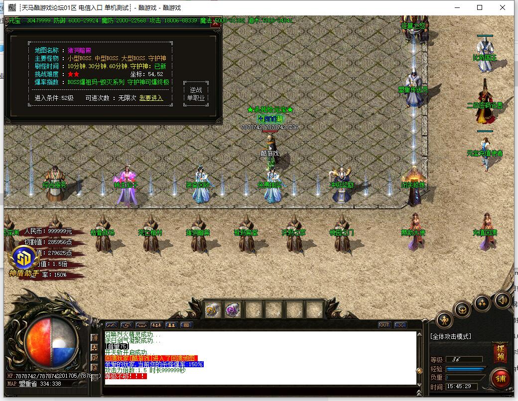[游戏简介] :|装备全靠打.爆率完全看脸,只要 有时间.元宝装备等级全都有!