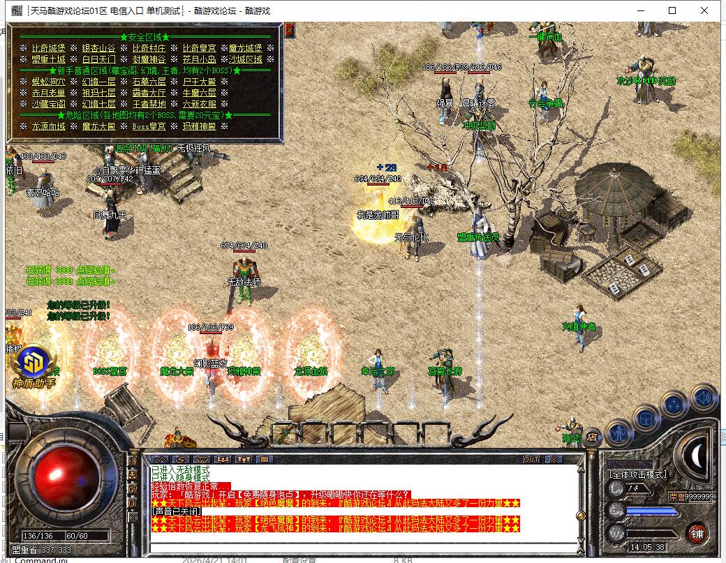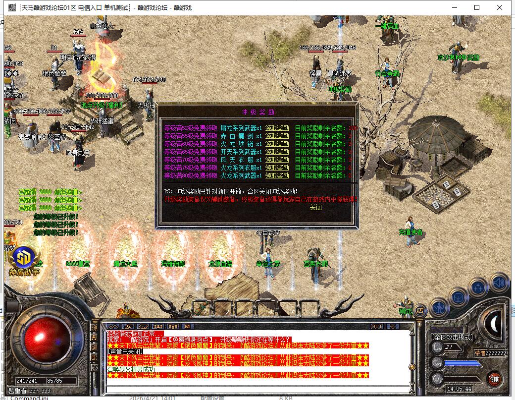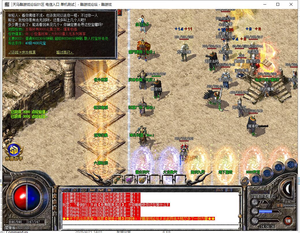 【系统】:本服长期开放,3W2血量以上BOSS可以爆出本服所有装备,这不是一天闪服,装备等级需各位努力,本服配有自动封挂系统,请大家共同营造一个良好的游戏环境,请勿使用非法程序,一经发现,零容忍。祝大家游戏开心。