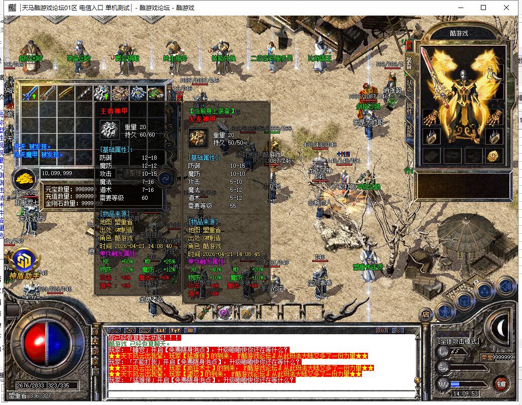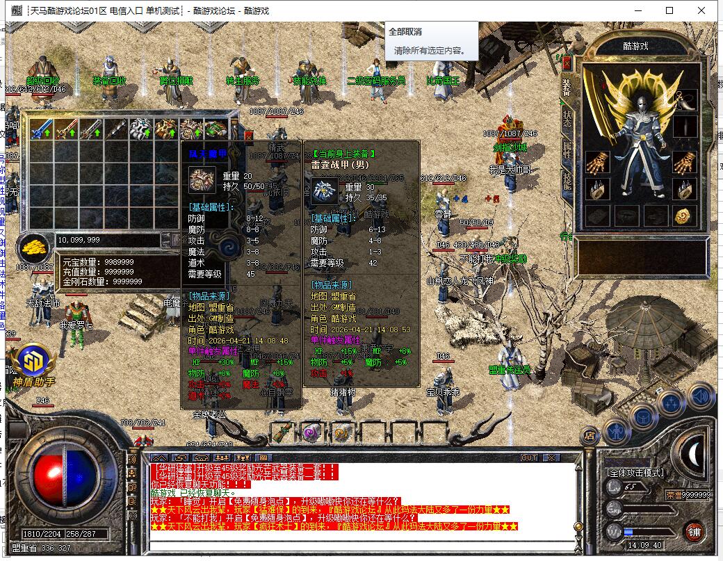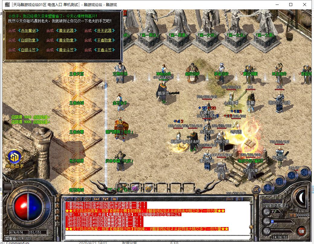 【系统】:本服封杀所有非法外挂,封挂效果绝对给力!一旦遇到开挂者直接封杀,请玩家珍惜自己游戏中劳动果实,诚信游戏。