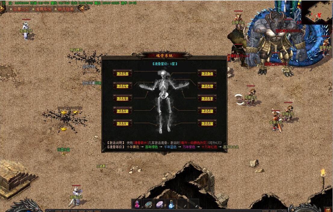 4、散人打怪物获得【魂骨】,最好卖给需要的玩家,获取金刚石,强化自身后,再选择是否进行魂骨升级。