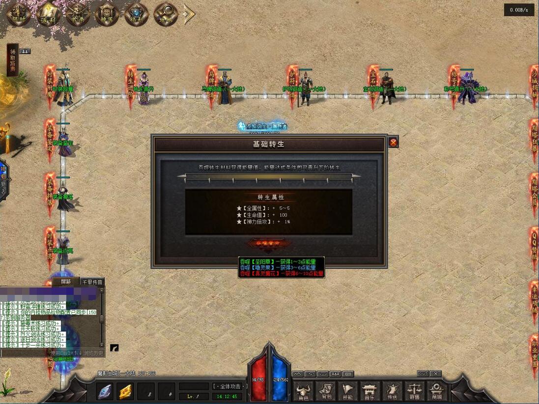 5.转生:增加人物神力,下大陆进图的必备条件,材料商铺用元宝买或者怪物爆出!