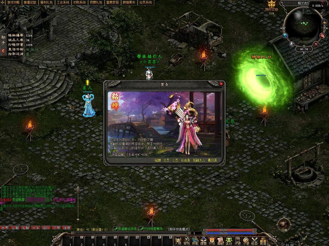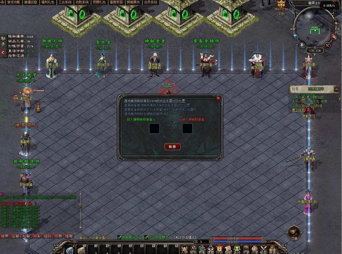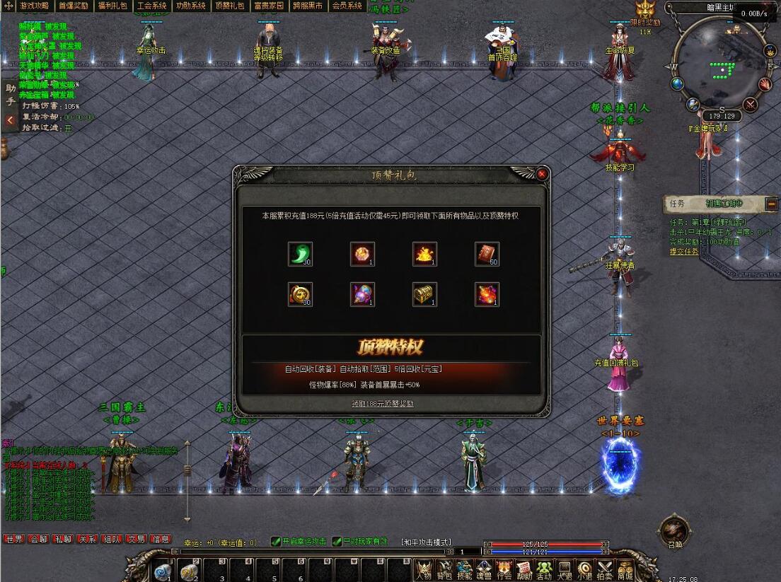 【祝福油】 安全区左边NPC使用 幸运九 刀刀最大攻击!只勾选开启幸运攻击对人或怪都生效 }