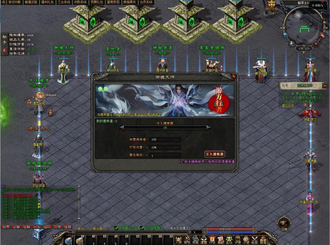 是升级称号的 需要魂炼值!魂炼值来源:打官职怪获得 第三章地图开始有包区地图 里面有个魂炼怪 必爆500魂炼值!