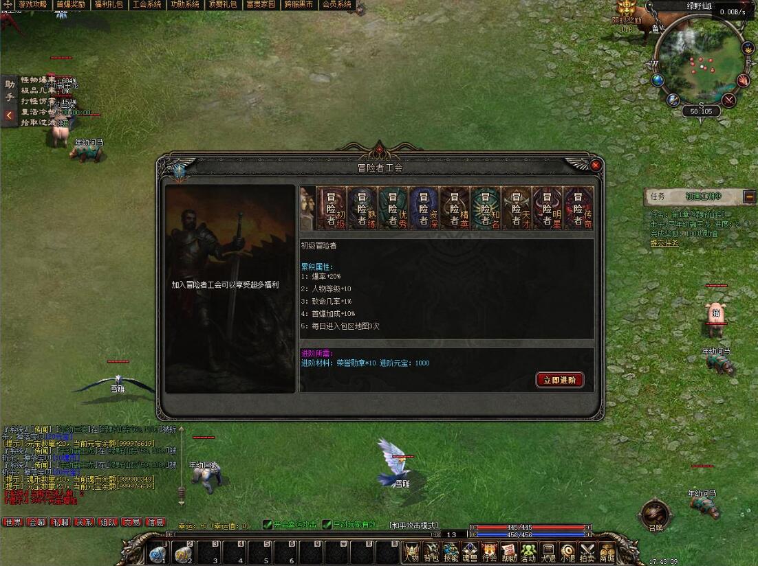 屏幕上方[功勋系统]升级房子增加进入地图次数,功勋值可分解装备或富贵家园或跨服黑市获得 }