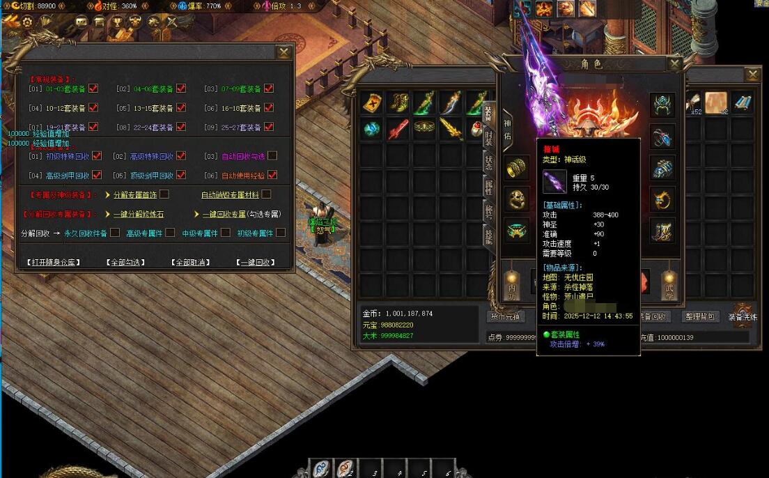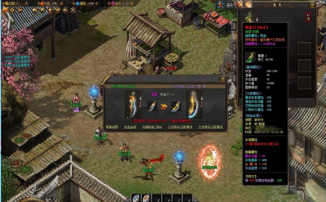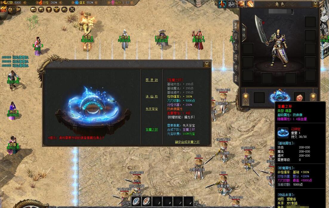 爆率+300%、5000点切割、砍怪伤害+200%、基础攻击200点
