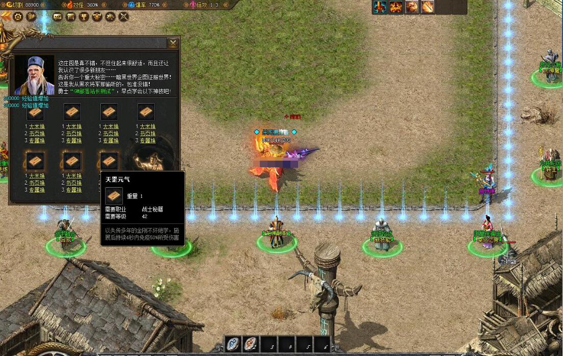 2.NPC直接领取免费的<沙城捐献>,免费自动自动捡取!