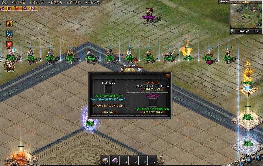 10.《巅峰源地|地图条件:进入需要攻击力≥3333点^地图消耗:30000元宝+地图每秒收费:80元宝^地图特点:爆率乐观、元宝和超级装备产出适中(后期刷元宝必选)^地图刷新:整套地图内最高刷新999wBoss、怪物越强刷新越慢、怪物死亡不会复活在镇妖神殿^地图掉落:小怪和Boss都会掉落所有装备