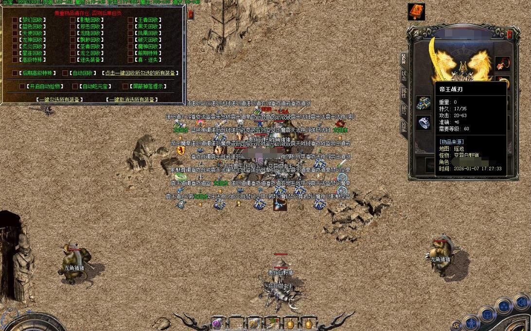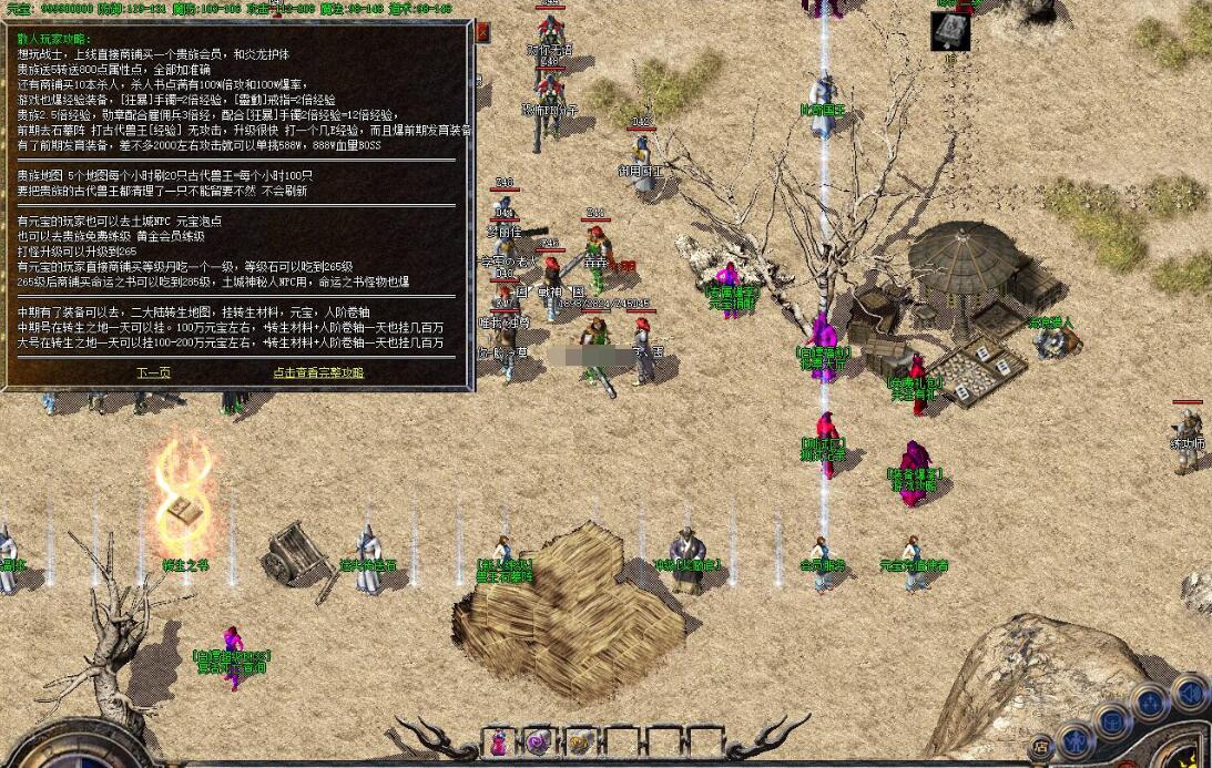 大号在转生之地一天可以挂100-200万元宝左右,+转生材料+人阶卷轴一天也挂几百万