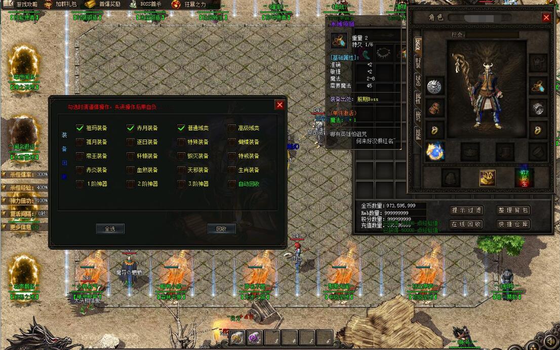2.玩家第一个打到指定的装备 可以到土城兑换充值积分. 用于领取充值赞助大使礼包和封号