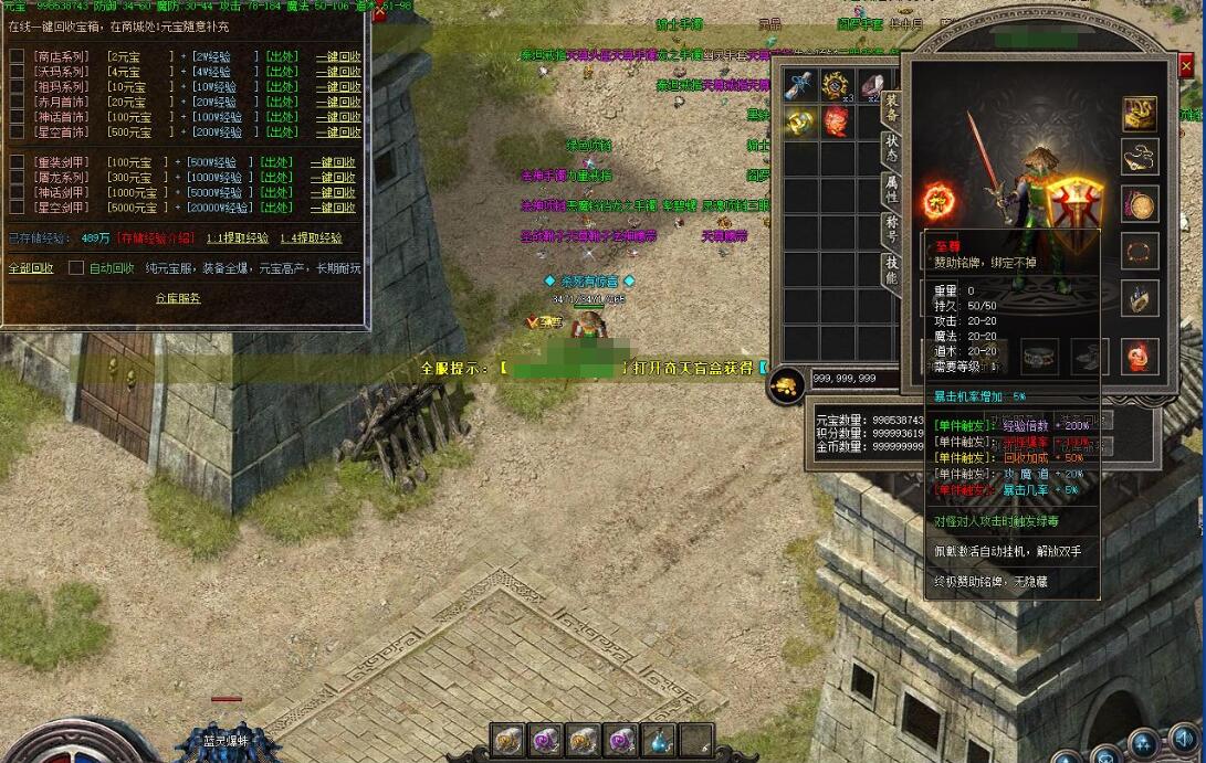 4:斗笠 勋章 血石,尽早打元宝合,增加大量攻魔道、血量、血量回复,终极特殊只有人形怪爆出