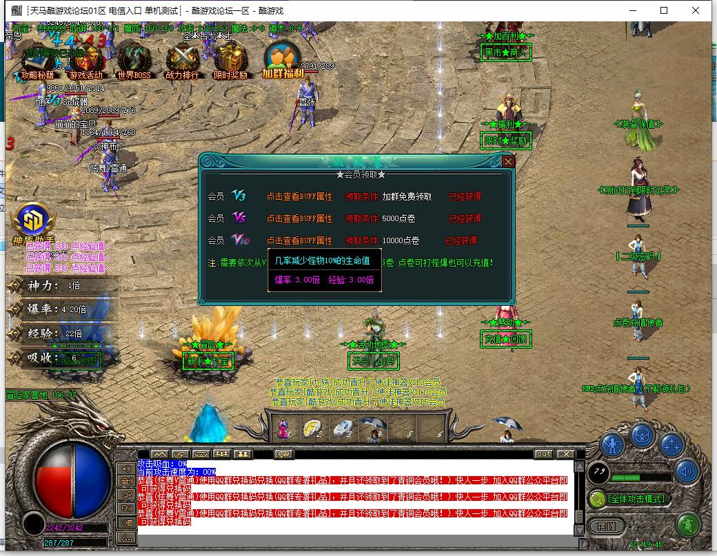 有耐心的散人玩家可以弄两个号.一个号守尖沙咀和铜锣湾活动.主号升级.尖沙咀和铜锣湾活动每次刷新大量活动怪.掉落大量材料.点卷.还有升级丹.这样既不会耽误主号升级打装备.又可以获得点卷.点卷可以拿来升级VIP.