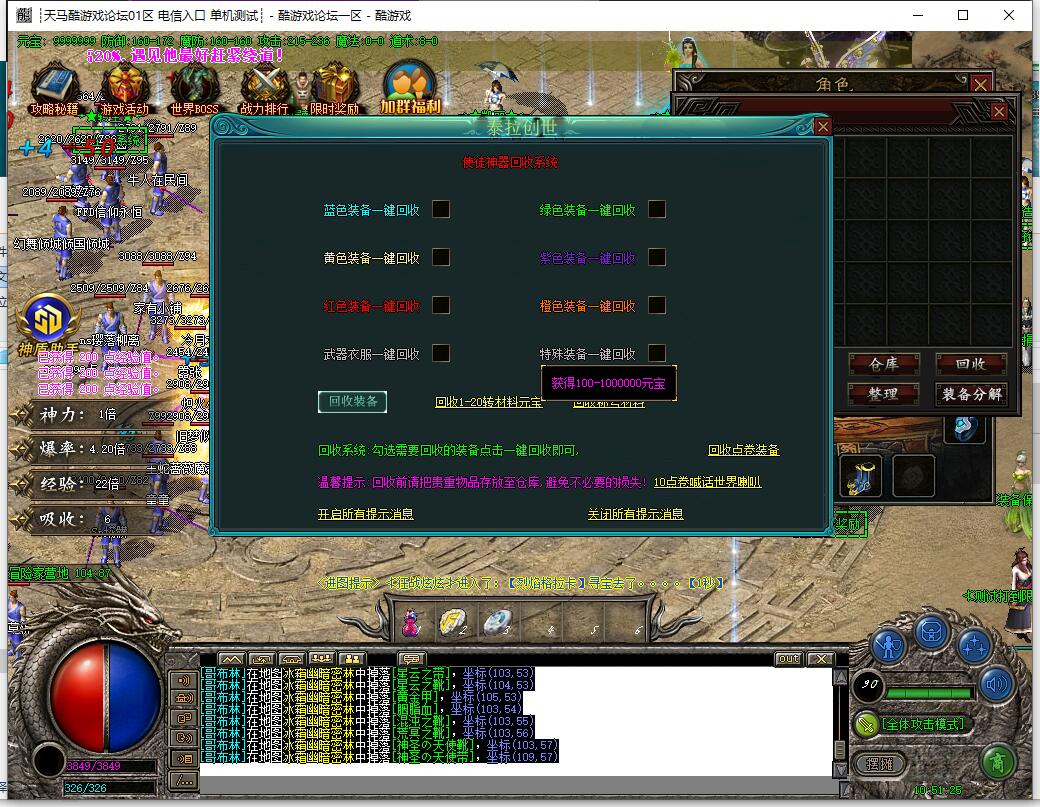 宝具分解:怪物掉落的宝具可以分解成宝具碎片.宝具碎片可以在主城梅尔文处升级宝具.也可以在点卷回收界面回收点卷.非常好打