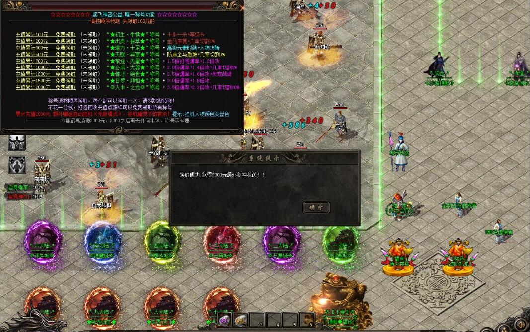 三.土豪晋阶:按上述操作,领取充值称号,进行高等阶转生触发高倍攻.提高打怪伤害.遇怪就干直接起飞.