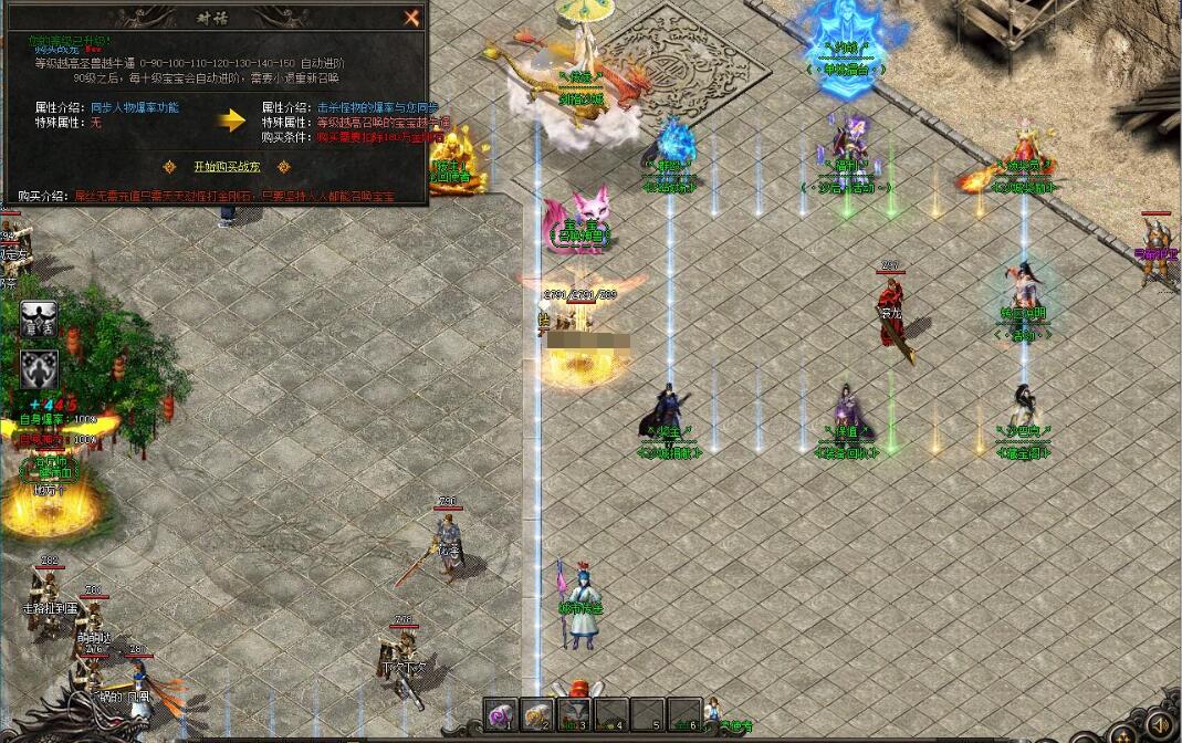 另外一种是“召唤圣兽”宝宝,需要金刚石购买,圣兽随着人物等级提升而增加威力,每提升等级10级变化一次,150为终极,