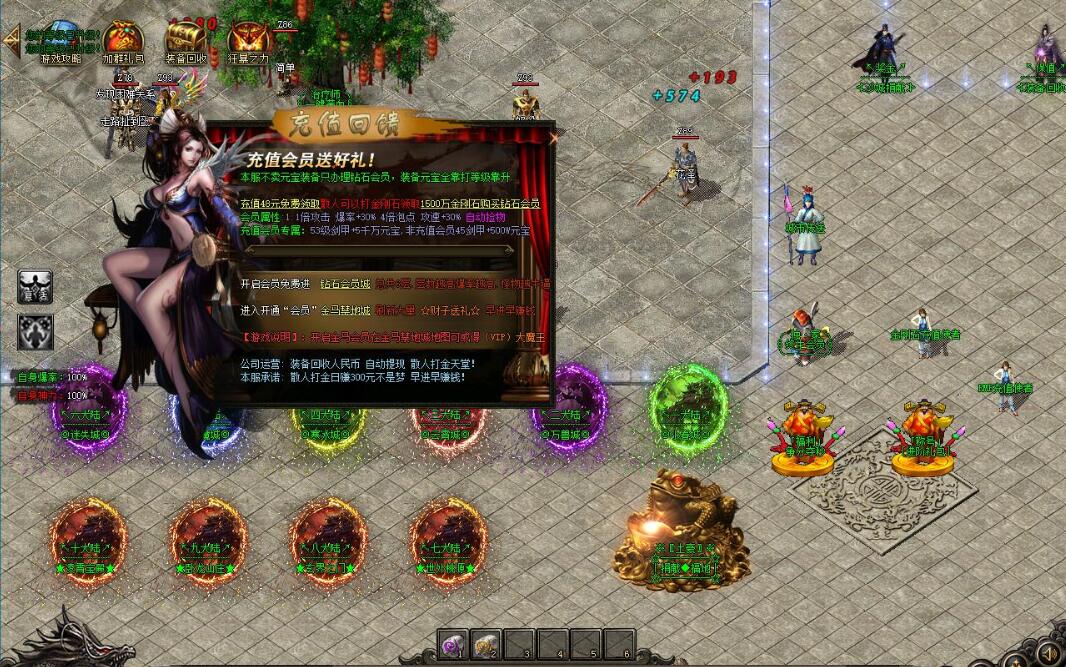 <金马会员说明> 可以增加2倍攻击速度、800w泡点、1.2倍攻、50%爆率,享受2倍回收,自动回收以及自动捡取等功能。