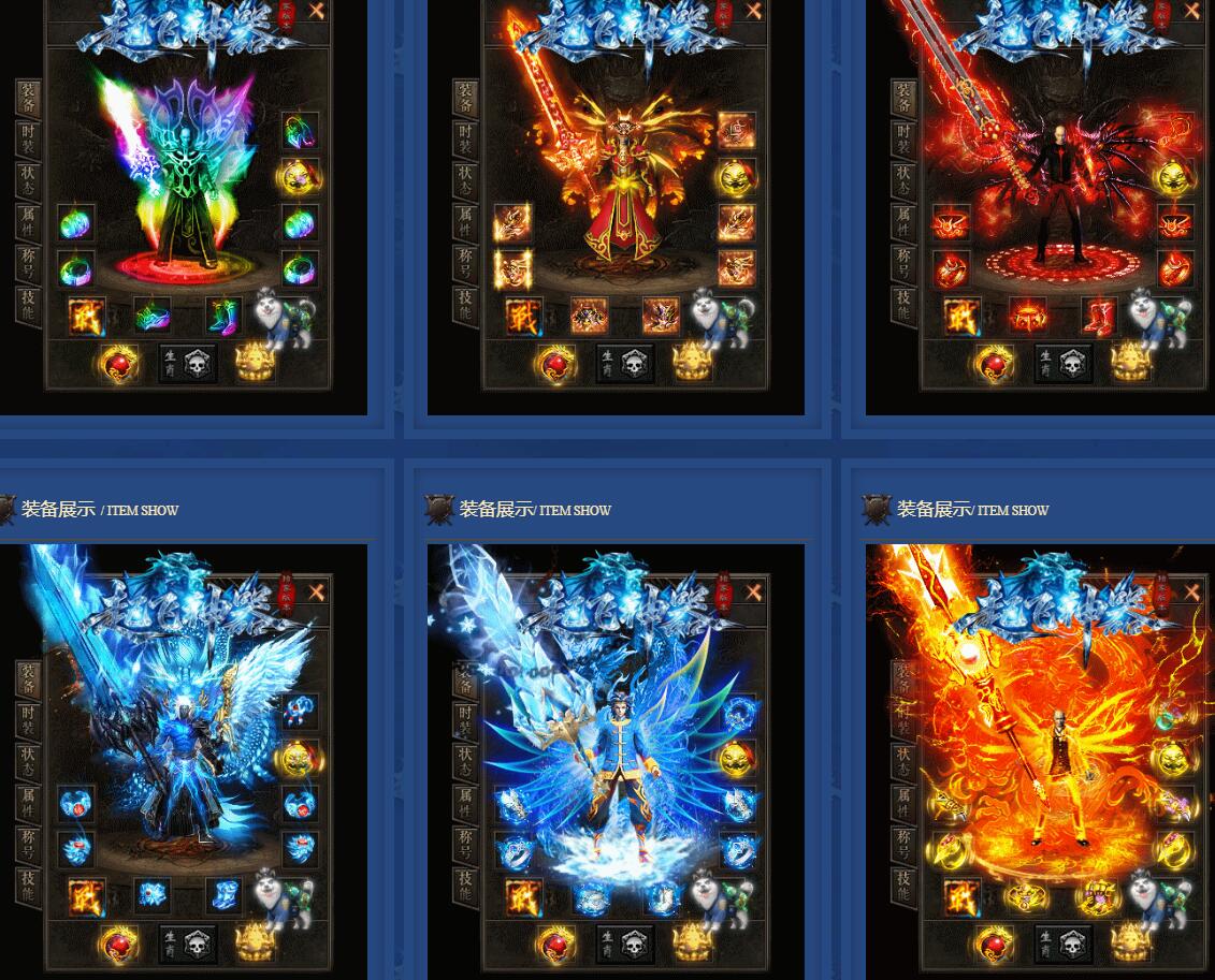 装备介绍 游戏共计67套装备,每样装备都是单件神力,非常牛逼。所有装备全部靠打怪爆出。打出一把神力武器屌丝都可逆袭干土豪.