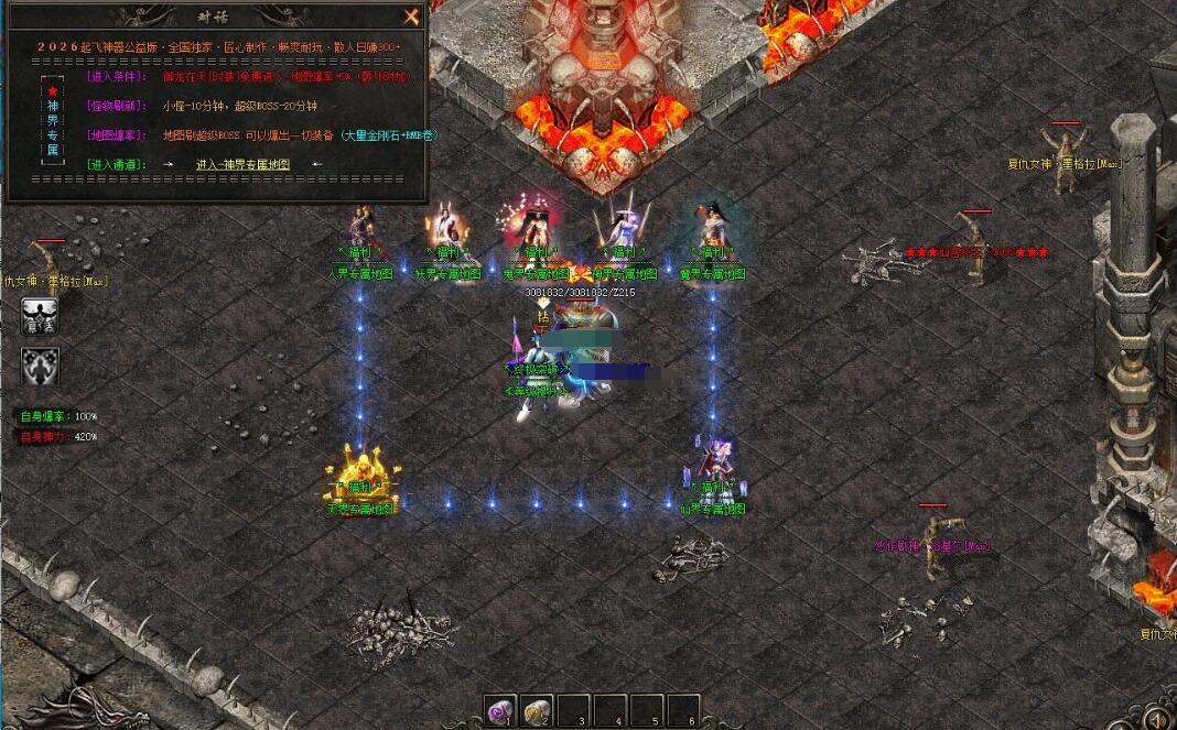 4.公平公正:游戏任何人爆率同等,不做任何特殊设置,充值多与少只是发展速度快慢,打怪效率的差距.