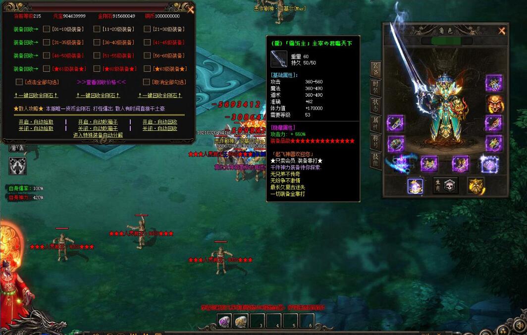 3.每样装备都自带攻倍属性,人民币玩家充值了不打装备的,PK打不过的请找自身原因,谢谢!
